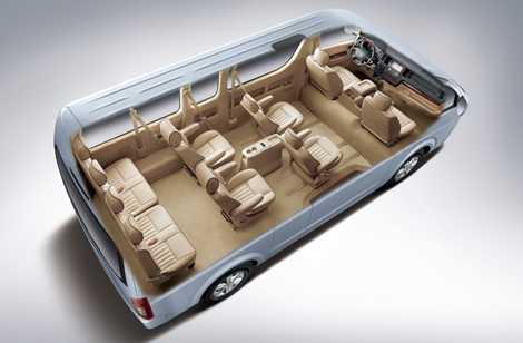 Supporter version satisfies needs for passenger transferring. With multi-layout of seats design, the capacity of 9-15 passengers is available.